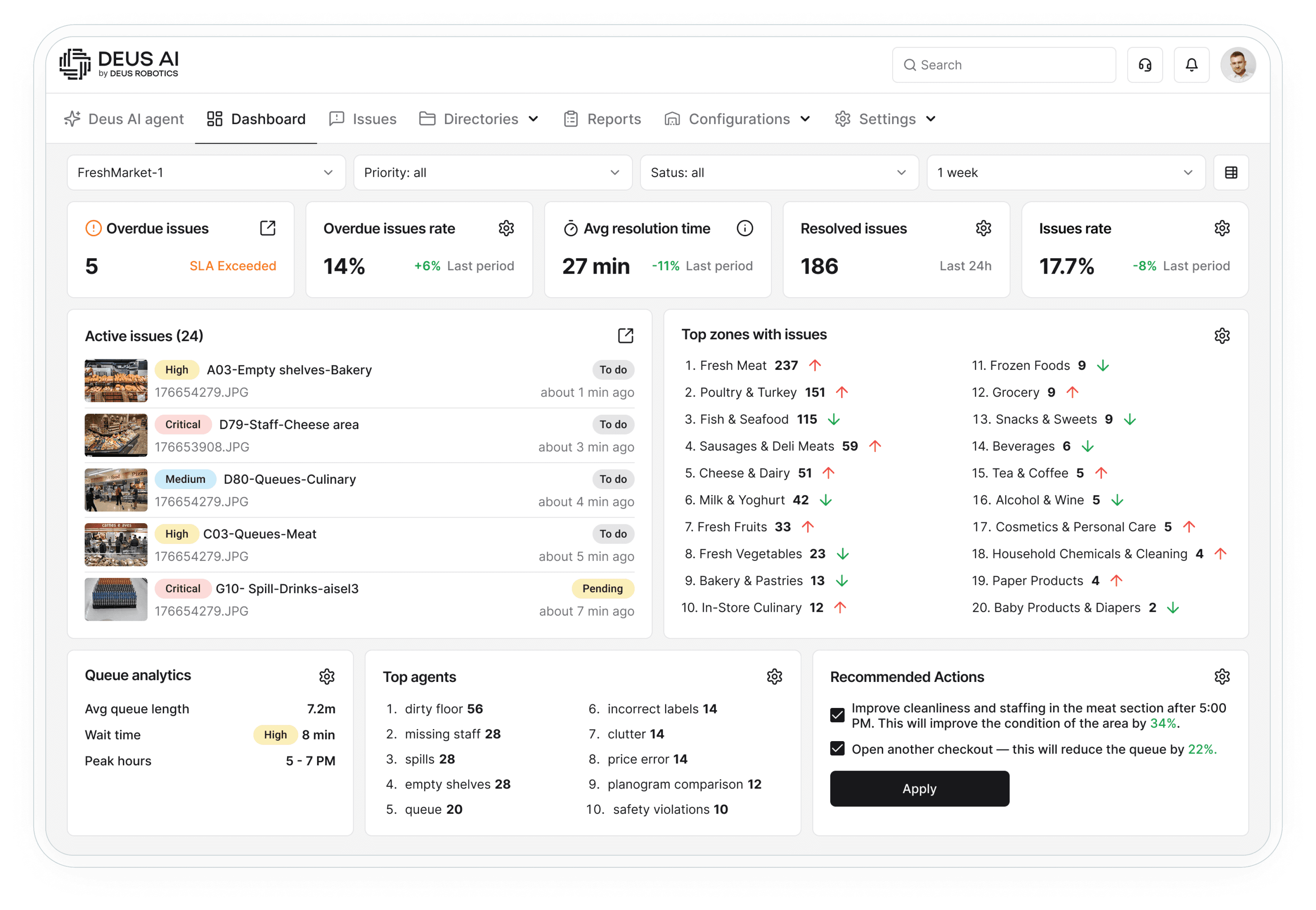 Deus AI Vision ensures consistent service and operational execution by detecting deviations in real time — no matter how many stores you operate.