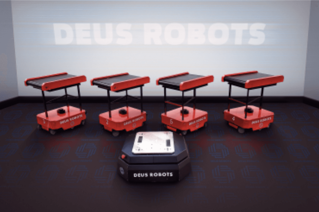 Deus Robotics is a robotics company founded in 2018, focused on developing advanced automation solutions. Deus Robotics specialists have developed six wheeled robots for work in warehouses, which navigate using QR codes located on the floor. These robots increase work efficiency: an average person sorts 500 parcels per hour, while with the robot, the number increases threefold to 1500 parcels.
